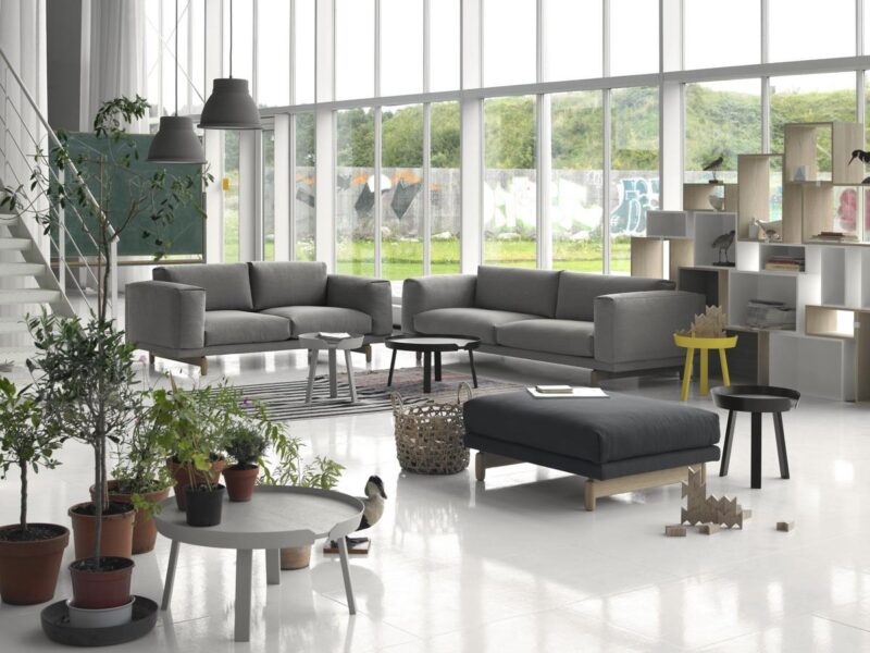 - Walnut Wood finish with Charcoal Fabric upholstery